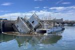 ▲颱風重創南部,西子灣有多艘漁船擱淺。(圖/記者董泓志拍攝)