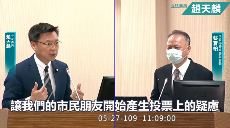 趙天麟在立法院外交和國防、司法及法制委員會質詢先替警政署長陳家欽「按個贊」,指出監票其實就是監視行爲,投票期間如果在30公尺內攝影,就視爲干擾投票,即便在30公尺外攝影也要勸離,如果有恐嚇、滋擾行爲,將立刻制止、裁罰。