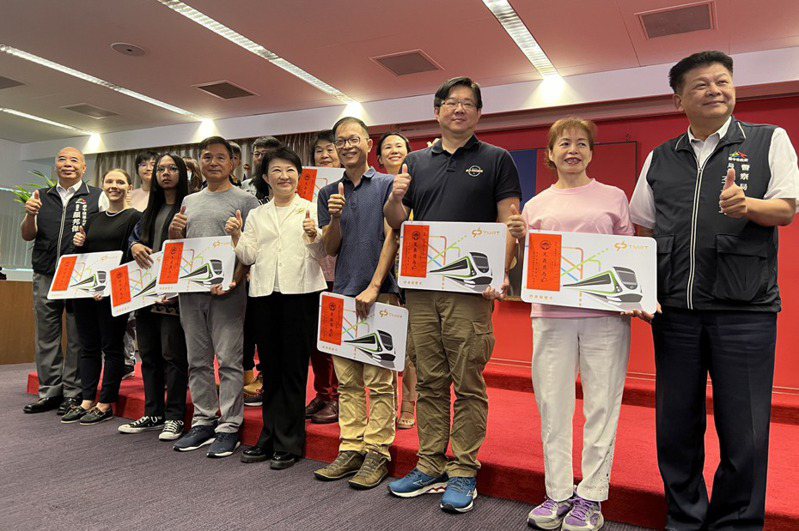 臺中捷運日前發生旅客持刀傷人事件,臺中市長盧秀燕昨天在市政會議表揚長髮哥(前排左三)等9名見義勇爲制止嫌犯的「中捷英雄」。記者陳秋雲/攝影
