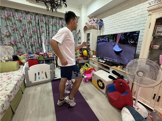 「超慢跑」門檻低、好上手,在家也能跑,醫師提醒,每分鐘跑180步的節奏最溫和,且一定要穿鞋、墊瑜珈墊,膝蓋要放鬆呈現ㄍ字型。(蔡依珍攝)