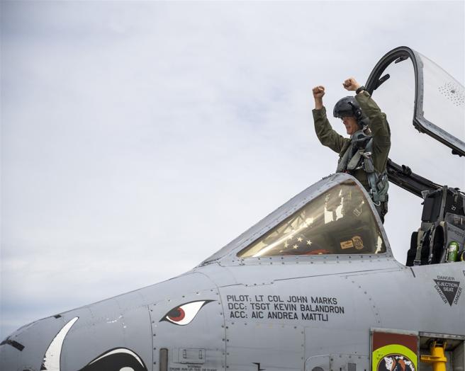 馬克斯中校駕駛A-10完成最後一次飛行任務,爲37年軍旅生涯畫下完美句點。(取自美國空軍網站)
