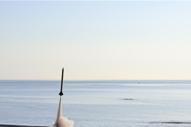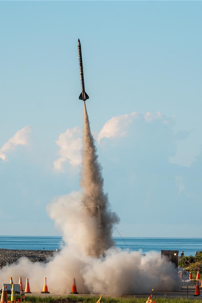 淡江大學火箭科研探空火箭「Polaris(北極星)」在屏東旭海順利升空。(國科會太空中心提供/羅琦文屏東傳真)