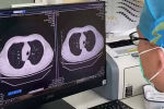 洪𬀩傑以聽診器聽呼吸,發現呼吸音異常,但聽不太清楚,緊急照肺部X光後,才找到答案是氣胸,原本該是肺的位置,有一塊被空氣給佔據了。