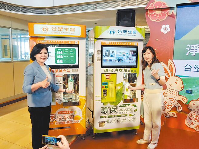 雲林縣府攜手臺塑生醫設置智慧補充站,鼓勵民衆自備回收空瓶填裝洗衣精等,減少使用一次性塑膠容器。臺塑生醫董事長王瑞瑜指出,智慧補充站估計每年可減少864萬支包裝瓶,減少700多公噸二氧化碳排放。