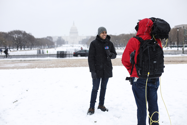 資歷將近20年的體育記者馬克·伍德利(Mark Woodley),當天被荷華州滑鐵盧市地方電視臺(KWWL News 7)抓回去上班,人在室外、頂着攝氏零下11度寒冷,在堆滿白雪的公路上進行新聞轉播,爲觀衆解釋天氣狀況。(示意圖,非當事人/shutterstock)