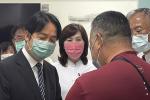 海軍S-70C反潛直升機22日重落地,造成4名軍官受傷,國防部長邱國正(右)23日趕到國軍總醫院左營分院探視受傷軍官。(林瑞益攝)