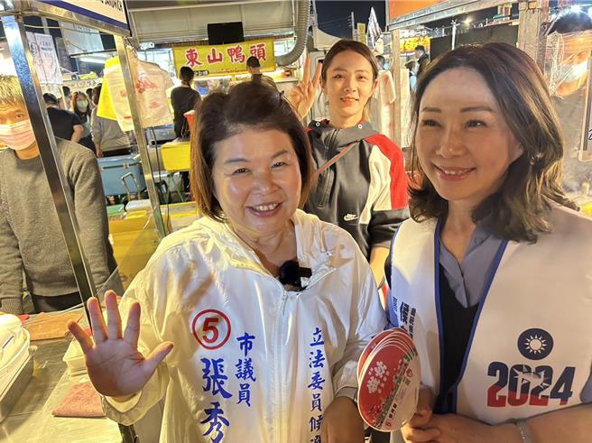國民黨嘉義市立委候選人張秀華近日由韓國瑜妻子李佳芬陪到湖美夜市拜票。(張秀華提供/廖素慧嘉市傳真)