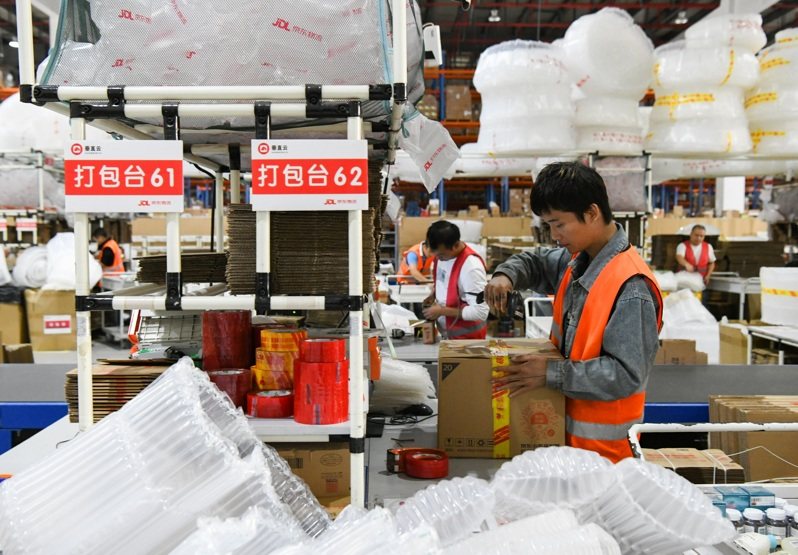 浙江力爭未來三年跨境電商出口倍增。圖爲在浙江金華市金義綜保區京東倉內,工作人員把進口商品分揀、打包。 (新華社)