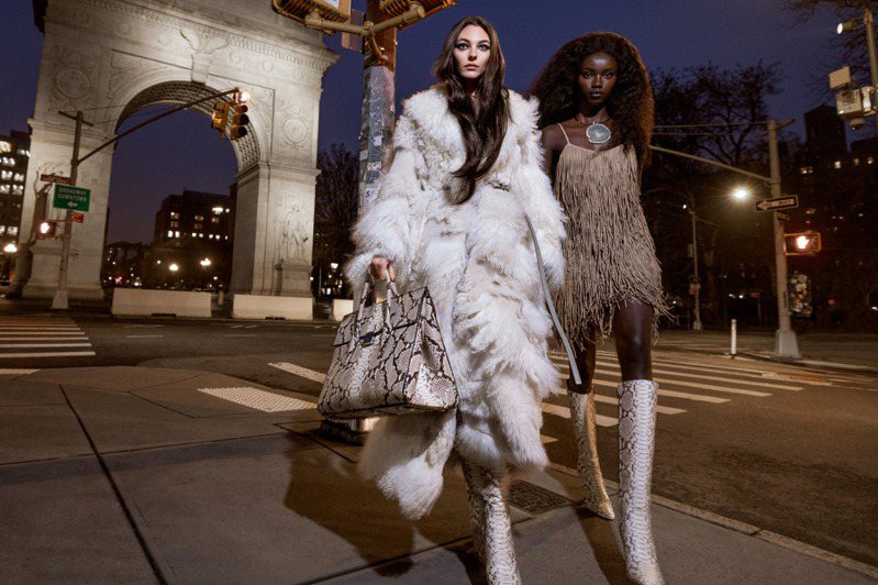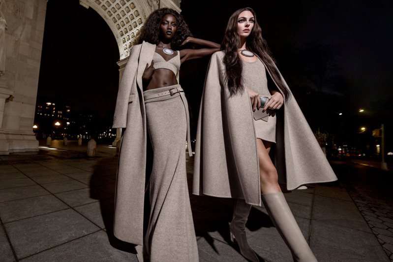 超模Vittoria Ceretti(左)與名模Anok Yai共同詮釋Michael Kors Collection系列頂級女裝形象廣告。圖/MICHAEL KORS提供