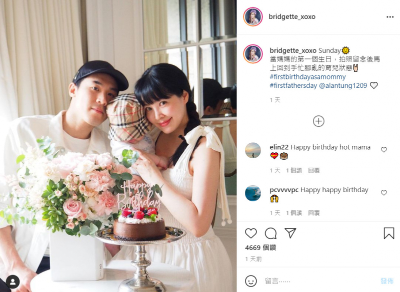 而廖曉喬還以文字幽默寫到:「當媽媽的第一個生日,拍照留念後,馬上回到手忙腳亂的育兒狀態。」意外透露她的人母日常。幸福模樣曝光後,網友也在底下獻上祝福,並贊她狀態宛如少女,紛紛迴應「少女好甜」、「還是那麼美」、「生日快樂!永遠開心,一家平安」、「只有看到少女在慶生」、「生日大快樂,超美的媽咪」、「越來越青春亮麗了,怎麼能夠,到底」。