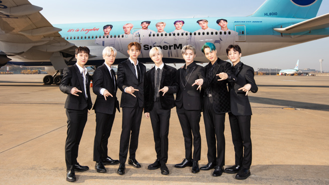 Lucas(黃旭熙,左三)曾短暫以團體「SuperM」的成員之一活動。(圖/達志影像)