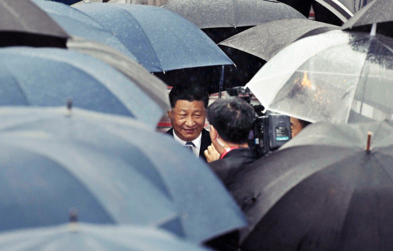 圖爲赴日參加G20、被雨傘包圍的中國領導人習近平。中國政府日前發言表示,拒絕在G20上談香港議題,等於是「此地無銀三百兩」,變相承認了香港「是個議題」。 圖/美聯社