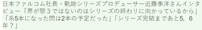 軌跡系列還能持續多少年暫不確定,但理應10年內完結,或許5、6年?