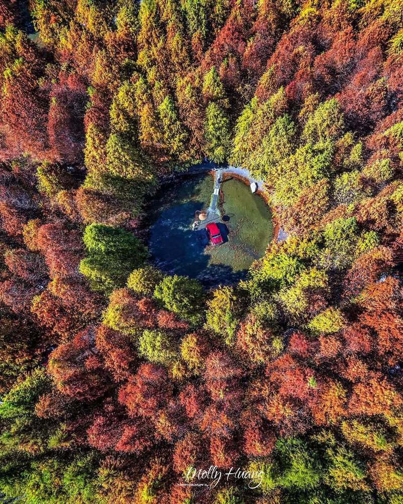 照片一分享出來,網友紛紛忍不住讚歎「太美了」,逗趣的是攝影師還帶着大家發揮想像力,當下的角度像「魔戒森林」,過一會再看又成了「火山爆發、色盲卡、可麗露」等等,邀你也來欣賞這上帝視角的羽粼落羽鬆,看看哪一個角度還能有更棒的想像!