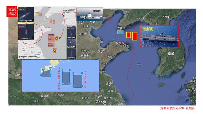 由於,媒體披露衛星拍照清晰之中共「遼寧號」航母於5月28日在渤海海域進行某項任務、加上中共南部戰區「山東號」航母未有北上動態訊息、以及前述大連東南方禁航區曾是「遼寧號」航母於2月29日至3月9日的海試區域等,綜合推斷上述肯定是中共「福建號」航母在第一次成功進行「近海」區域試航後,於23日出長江口北上至黃海北部(5月27日)開始進行第二次「遠海」區域的試航任務,並準備接裝電磁彈射型的殲-15T艦載機與殲-35。