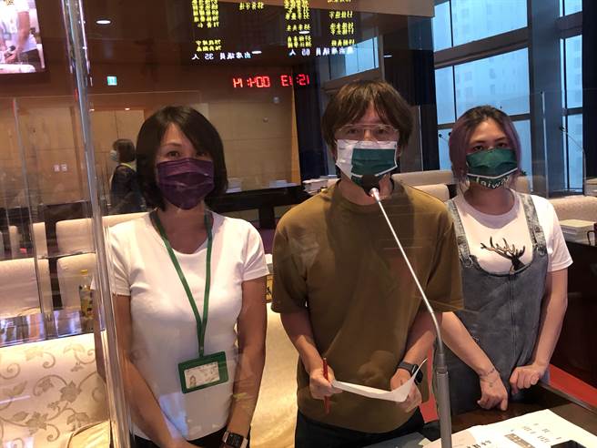 市議員張家銨、江肇國、賴佳微(由左至右),今天質詢批觀旅局被動等待中央政府的紓困方案,令相關業者苦不堪言,又無可奈何。(陳世宗攝)