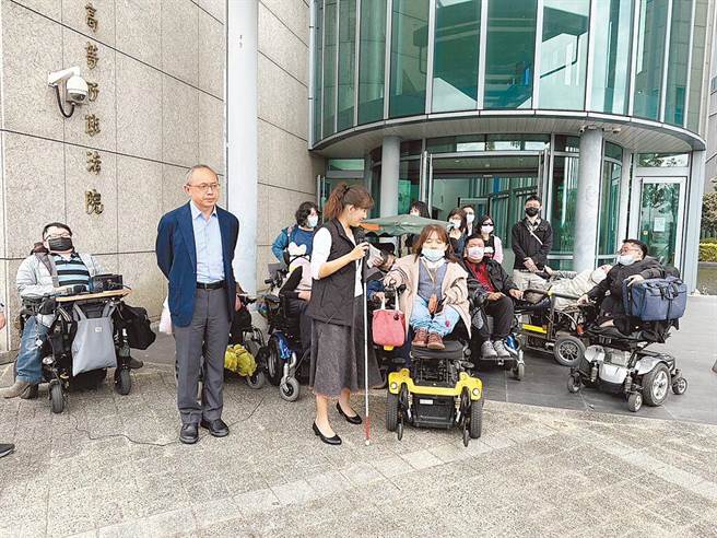 國內首宗身障者個人助理時數行政訴訟判決部分勝訴。圖爲到法院聲援的身障團體及人士。(本報資料照片)