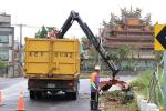 臺東縣池上鄉知名景點伯朗大道遊客多,掉落田間的廢棄口罩也隨之增加,清潔人員忙着清理掉落田裡的口罩。(蔡旻妤攝)