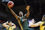 臺灣職業籃球大聯盟(TPBL)1日上演「新北內戰」,由新北國王對新北中信特攻,中信特攻隊德芬(中)禁區跳投進攻。(黃世麒攝)