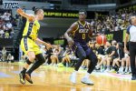 臺灣職業籃球大聯盟(TPBL)1日上演「新北內戰」,由新北國王對新北中信特攻,新北國王隊沃許本(左)禁區進攻。(黃世麒攝)