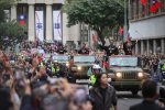 「棒球英雄 臺灣尚勇」大遊行,球員行經館前路(英雄谷)時,熱情球迷拿出相機搶拍偶像。記者杜建重/攝影