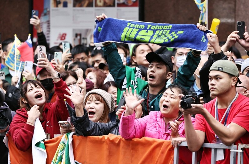 「棒球英雄 臺灣尚勇」大遊行下午在臺北登場,熱情民衆擠爆館前路(英雄谷),高喊「Team Taiwan」。記者杜建重/攝影