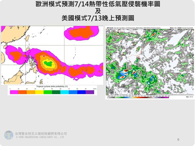 7月進入颱風季,臺灣整合防災工程技術顧問公司總監賈新興今(8日)在YouTube頻道「Hsin Hsing Chia」表示,觀察週日於菲律賓東方外海熱帶性低氣壓發展機率,約4到5成的機率,但變成颱風機率較低,週六、週日密切觀察該低氣壓的發展。