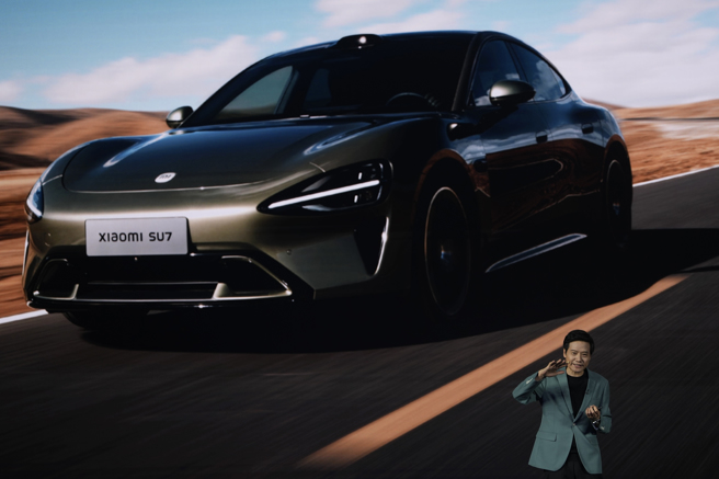 小米28日晚間宣佈SU7純電動汽車正式上市。(圖/美聯社)