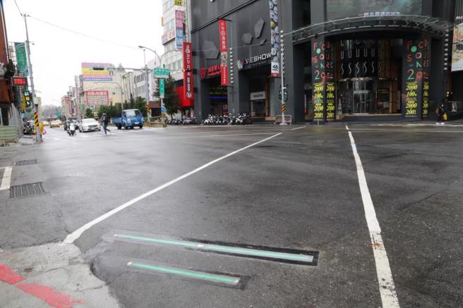臺南市中西區新光三越中山店前的路口行人穿越道前,突多了行人地崁燈。(圖/翻攝自臺南市政府網站)