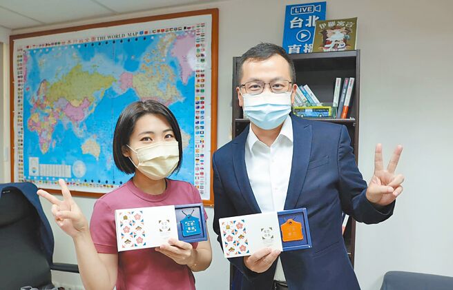 爲加深選民印象,募款小物也要花點心思,國民黨臺北市議員徐巧芯(左)訂製「芯想事成」平安符送給捐款者。(摘自徐巧芯臉書粉絲專頁)