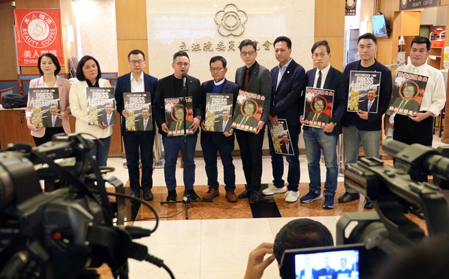 立委王鴻薇(左起)、陳玉珍、羅智強等人16日舉行「衛星廣播電視法部分條文修正草案」記者會。(姚志平攝)