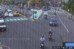 黑色公羊第二度用頭上的角撞倒機車,紅衣婦人尖叫逃跑,悄悄折返扶起機車。路旁拿手機錄影的女子實在忍不住竊笑,又不好意思笑太大聲。圖/翻攝社會事新聞影音