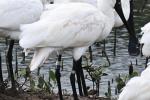 鳥友鄭宗達昨天上午8點多在嘉義縣南布袋7區溼地拍攝黑面琵鷺棲息覓食,意外發現其中1只有系掛腳環「N44」,令他相當興奮,因爲去年10月30日也在南布袋溼地發現「N44」的蹤跡,推測「N44」也可能已成南布袋溼地的留鳥。