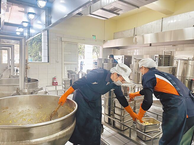 雲林縣崙背國小的中央廚房試營運,廚工稱讚設備齊全、環境乾淨明亮、外型又吸睛,小朋友很有福氣。(崙背國小提供/周麗蘭雲林傳真)