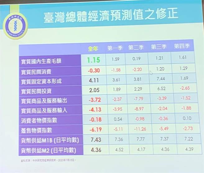 中研院經濟所今天公佈的2020年臺灣經濟情勢總展望的修正數據,修正2020年實質經濟成長率爲1.15%。若扣除掉振興三倍券預估的0.2個百分點GDP年增貢獻,等於是在保1的臨界點。