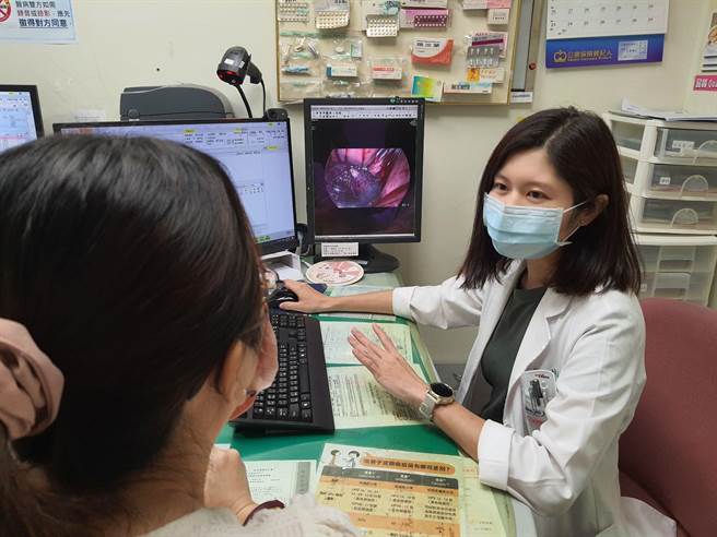 大里仁愛醫院婦產科醫師林玉珊(右)指出,利用陰道自然孔可進行子宮切除,同時也能觀察到卵巢及輸卵管是否有病竈。(大里仁愛醫院提供/潘虹恩臺中傳真)