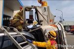 關子嶺火王爺祭,約500位民衆到場參與盛事,一同拉起火王爺山車繞境祈福。(鄭雅文攝)