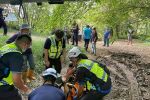 ▲▼警消人員用擔架接駁下山,送醫後還是回天乏術 。(圖/記者黃孟珍翻攝)