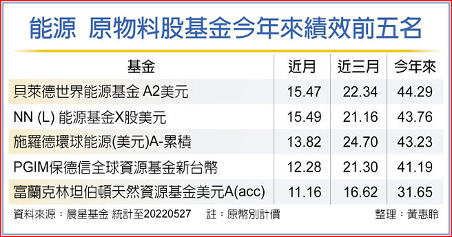 能源、原物料供不應求,已讓能源、原物料基金今年來衝出好績效,由於短期內供給持續緊繃,法人表示,在全球各國政府管控放寬後,必需性通勤需求快速回溫,搭配近期各國逐步開放國門迎接旅客,油價及能源類股依然呈現多頭走勢。