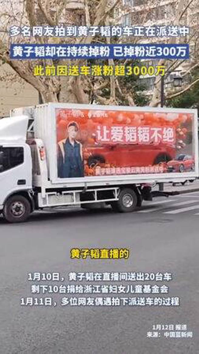據悉,黃子韜表示說要抽獎送車後,粉絲數最高曾一度衝破4500萬,不過,直播抽獎結束後,退粉潮來襲,瞬間少了逾300萬的粉絲,這也讓「黃子韜掉粉超百萬」關鍵字話題衝上微博熱搜榜。