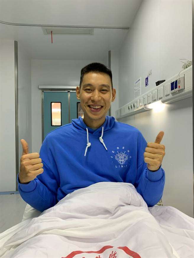 林書豪也發佈自己在醫院病房內的照片,跟大家表示他沒事。(取自林書豪臉書)
