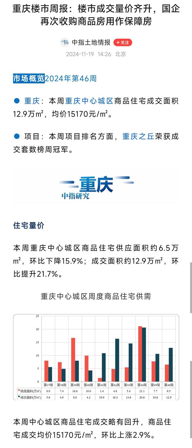 樓市起風了!重慶樓市太燃了,成交面積上漲21.7%,價格上漲2.9%
