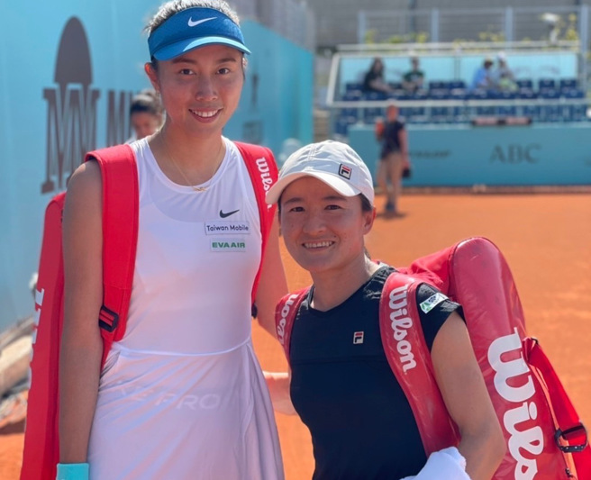 詹皓晴(左)、青山修子(右)在馬德里大師賽首輪直落二過關。(劉雪貞提供)