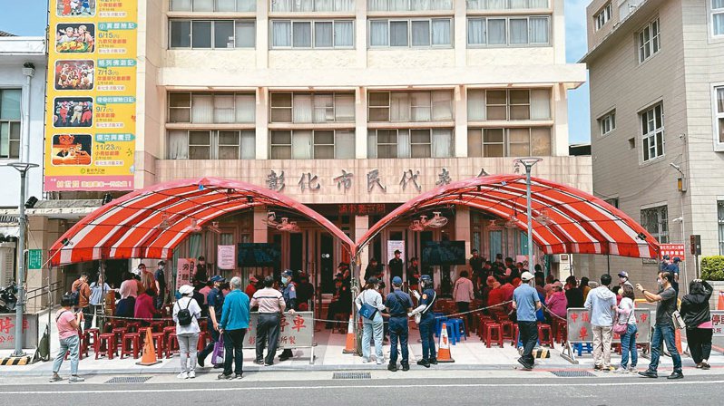 彰化市代會昨審議興建火葬場的提案,支持與反對民衆在外旁聽,警方部署警力戒備。記者劉明巖/攝影