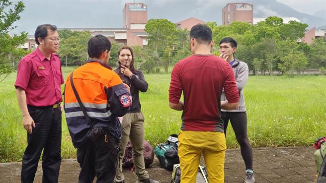 56歲華裔美國籍葉姓女教授18日縱走能高安東軍路線後失聯迄今,曾登頂聖母峰且綽號爲「三條魚」的臺灣女登山家詹喬愉(中)今與新北共10名搜救隊員加入花蓮縣消防局搜索行列。(楊姓民衆提供/羅亦晽花蓮傳真)