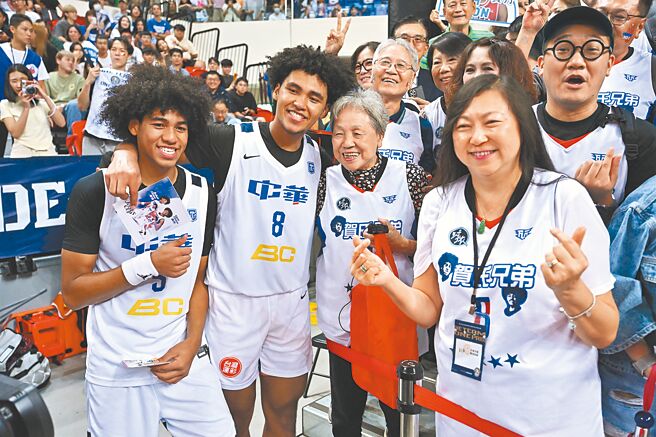 賀博(左至右)、賀丹與外婆、媽媽開心合照。(中華籃協提供)