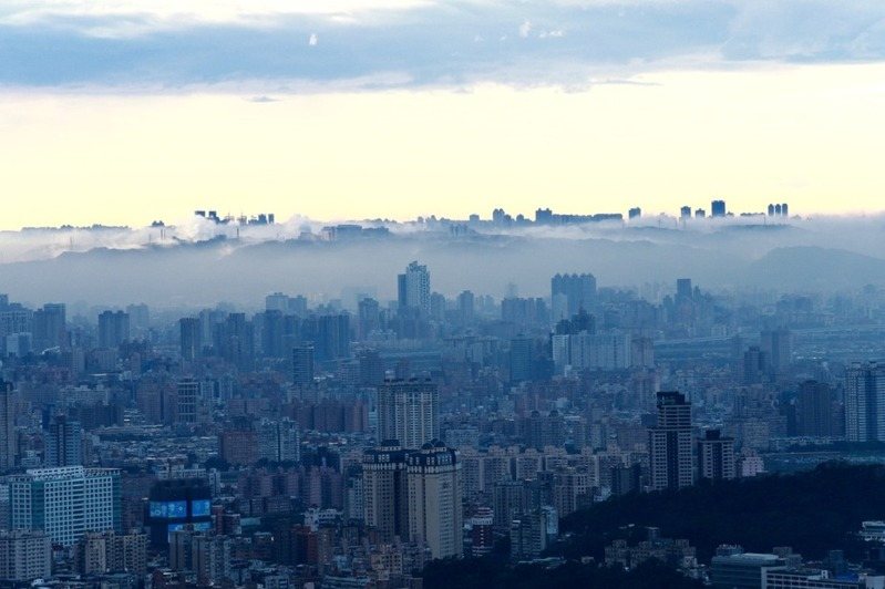 從臺北盆地前往林口臺地的山路多達數十條。照片中遠方高處的林口臺地,在雲霧中像是海市蜃樓。聯合報系資料照片/記者黃義書攝影