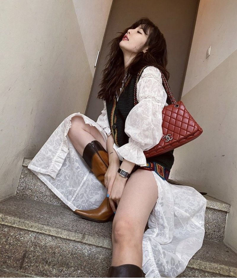 ▲泫雅時而貴氣,背香奈兒包並搭配香奈兒BOY·FRIEND腕錶。(圖/翻攝hyunah_aa IG)