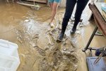 蘭嶼自昨夜起間歇性降下大雨,今晨雨勢明顯加劇,雨聲震耳欲聾。部落族人魯邁表示,早上約莫5、6點醒來,就聽見窗外雨聲變大,走出屋外發現部落旁的溪流已變成黃泥濁水涌入海中,海面呈現藍黃交錯的景象。
