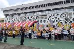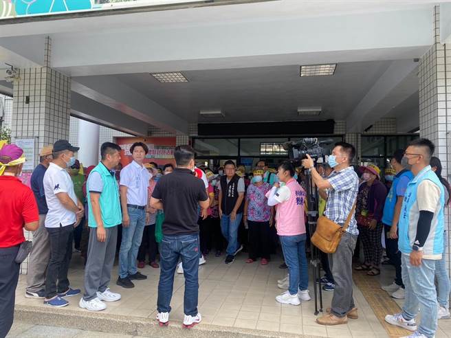 近百羣衆到彰化永靖鄉公所抗議,表達反對在第六公墓設置太陽能光電板的立場。(民衆提供/孫英哲彰化報導)